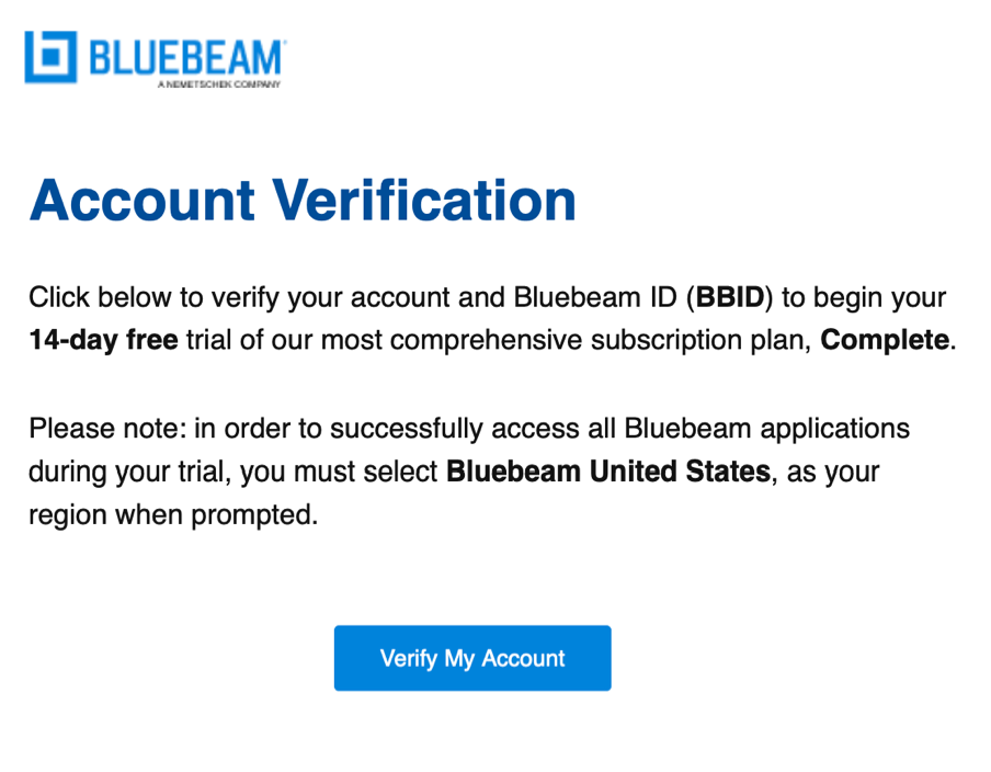 - Once you've heard back that your license is assigned, check your inbox for an email from BlueBeam. You should see an email similar to what is shown below asking you to "register your BlueBeam ID," and you will want to fill out that form.