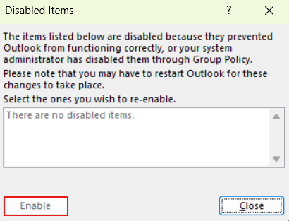 Checking disabled COM add-ins: