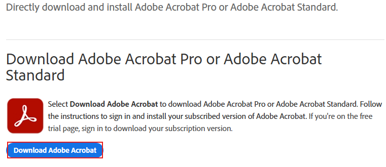 Open your preferred Web Browser and visit the following link to reach the Adobe Download Page (Adobe.com). You can find simple instructions on this page for downloading and installing Adobe Acrobat with the Creative Cloud. There are also links to more in-depth help articles from Adobe.